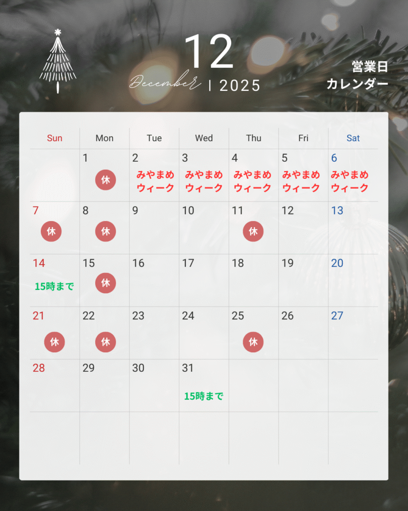さて、12月営業スケジュールをお知らせいたします。